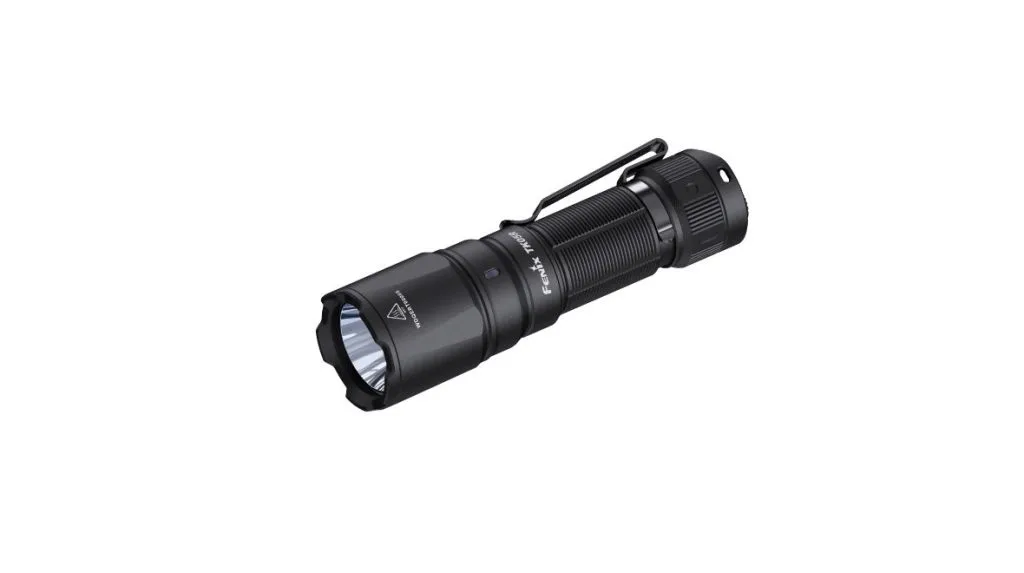 Fenix TK05R je džepna taktička baterijska lampa, laka za upotrebu, punjiva sa mogućnošću brzog aktiviranja stroboskopa i izlaza do 1000 lumena. Opremljen je vrhunskom Osram CSLPM1.TG LED-om, zahvaljujući kojoj ima savršeno fokusiran konus i sija do udaljenosti od 450 metara. Lampa koristi dvostruki taktički prekidač, koji omogućava bržu i pouzdaniju kontrolu u hitnim situacijama. Glava baterijske lampe je opremljena upadljivim rubom, tako da se lampa može koristiti za probijanje stakla ili za samoodbranu. Robustan dizajn omogućava upotrebu svjetiljke na dugom oružju, pa je pogodna za profesionalce, oružane snage i lov. Lampa se napaja jednom kompaktnom Li-ion 18350 1100 mAh baterijom (uključena u paket), koja se puni direktno u lampi preko modernog USB-C konektora i daje energiju za do 14,5 sati osvjetljenja. Čvrst i vodootporan dizajn predodređuje ovu taktičku baterijsku lampu prvenstveno za oštre vanjske uvjete i za upotrebu u sigurnosnim snagama, potrazi, spašavanju i lovu.