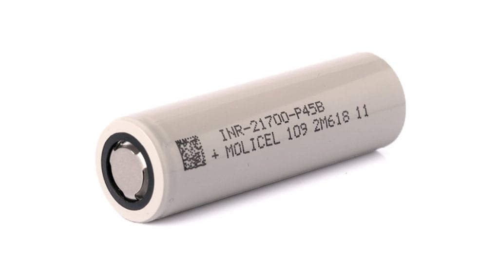 Molicel INR21700-P45B visoko naponska baterija nudi tipičan kapacitet od 4500 mAh (min. 4350 mAh) i može kontinuirano isporučivati struju od 45 A. Njihova svojstva čine ove baterije pogodnim za uređaje s izuzetno velikom potrošnjom struje, kao što su elektronske cigarete i isparivači. Baterija je industrijskog dizajna, bez zaštitne elektronike, tako da nije pogodna za Fenix baterijske lampe i farove, gde ne bi imala električni kontakt.