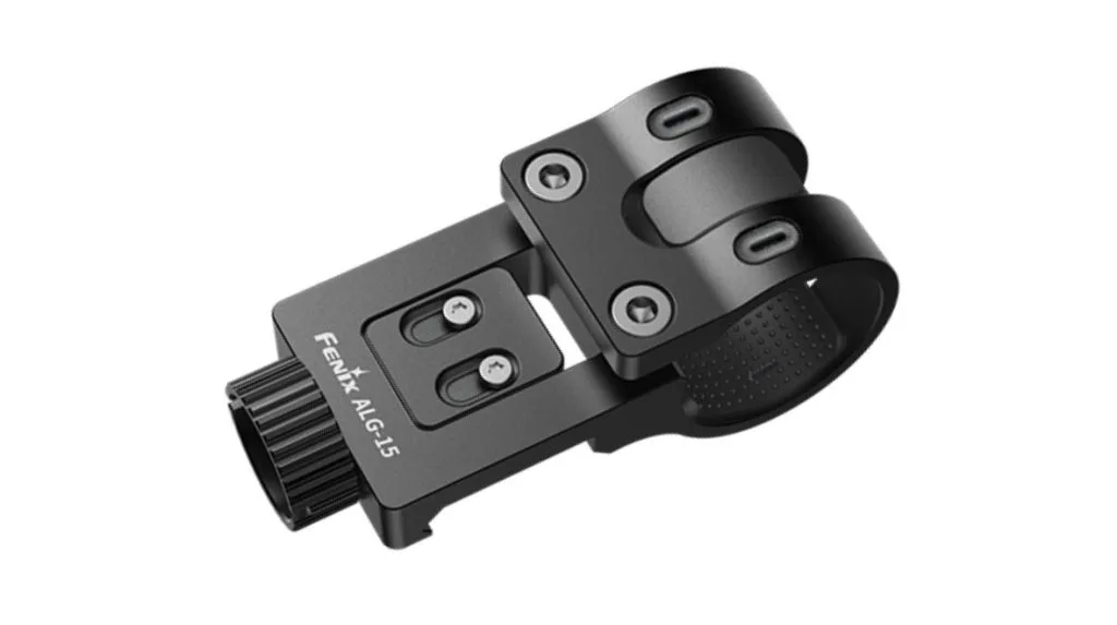 Metalna montaža svjetiljke na standardiziranu šinu za oružje (Weaver / Picatinny / MIL-STD-1913). Pogodno za lampe prečnika tela od 22,5 – 26,0 mm i prečnika glave do 40 mm.