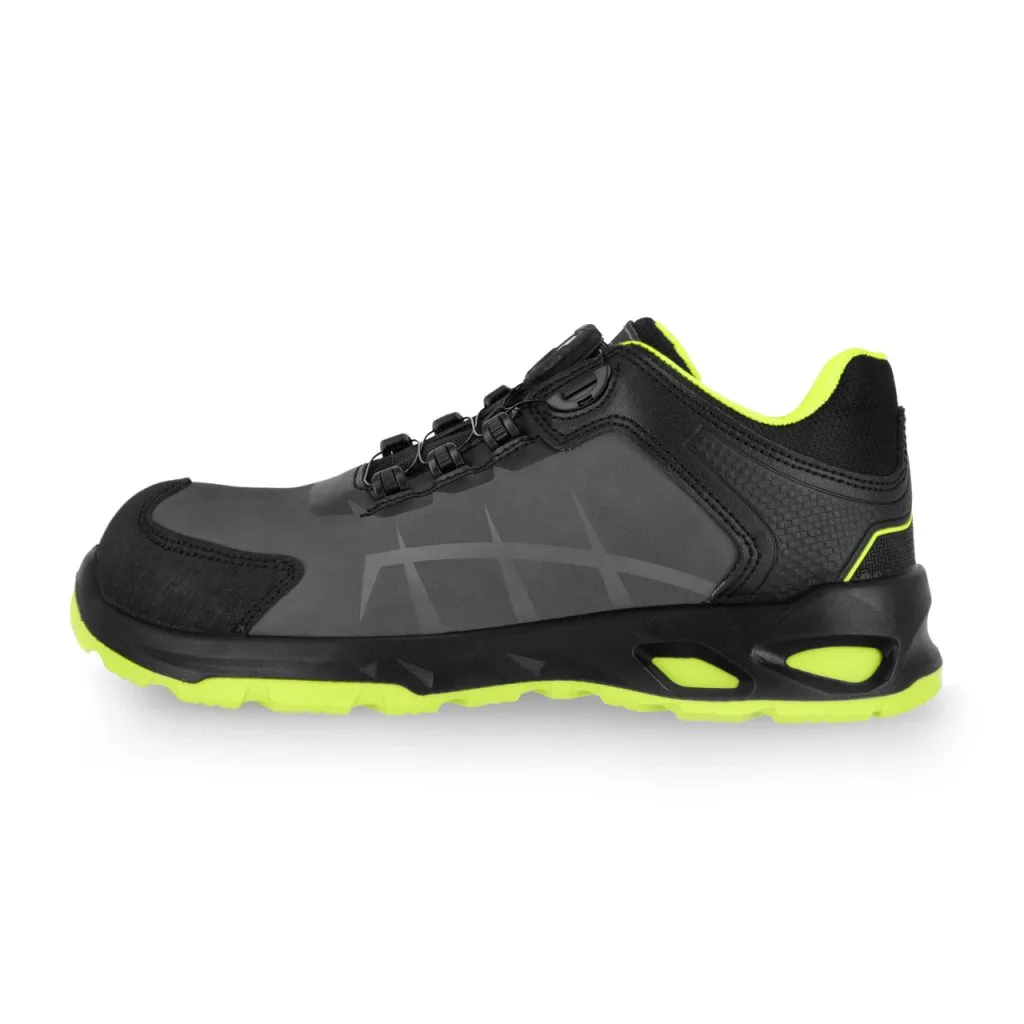 Zaštitne cipele NEXO S3L sa SPINPRO sistemom vezivanja, zaštitnom kapicom za prste i umetkom od kevlara protiv probijanja. Đon od poliuretana dvostruke gustine PU/PU, antistatičan, protiv klizanja i otporan na ulje. Apsorpcija energije u dijelu pete. Udoban, mekan, fleksibilan umetak od pjene od organskih vlakana sa visokom apsorpcijom udaraca, prozračnim i antiperspirantnim svojstvima. Podstava od materijala sa higroskopnim i ventilacijskim svojstvima. Ojačani prsti sprečavaju habanje i mehanička oštećenja. Kategorija S3L SR FO. Ispunjava zahtjeve standarda EN ISO 20345:2022.