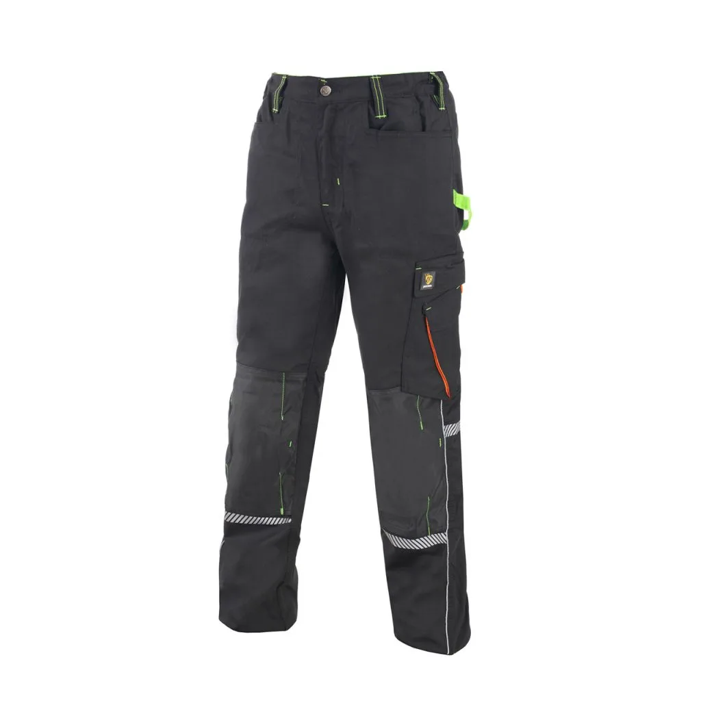 PIONEER pantalone izrađene od visokokvalitetne tkanine 35% pamuka i 65% poliestera težine 245 g/m² i modernog dizajna. Mnogi funkcionalni džepovi, uključujući prednje džepove, stražnje džepove prekrivene čičak preklopom, džep combat tipa, kaiš za vješanje alata kao što je čekić itd. Pojačanja od materijala koji štite od habanja na džepovima i kolenima sa mogućnošću korištenja štitnika za koljena . Dodatno podešavanje obima struka. Ojačanja ringlovana i trostruki šavovi za izdržljivost. Dodatni reflektirajući elementi. Svaki par pantalona je upakovan u posebno pakovanje. Veličine od S/48-2XL/58.